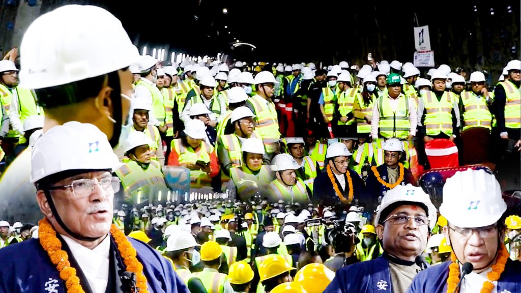 नेपालमा फेरी सुरुङ मार्गको काम अगाडी बड्ने बटम दबायर यसरी ब्रेक थ्रु हुटिङ गरियो प्रधानमन्त्री प्रचन्डको हात बाट |